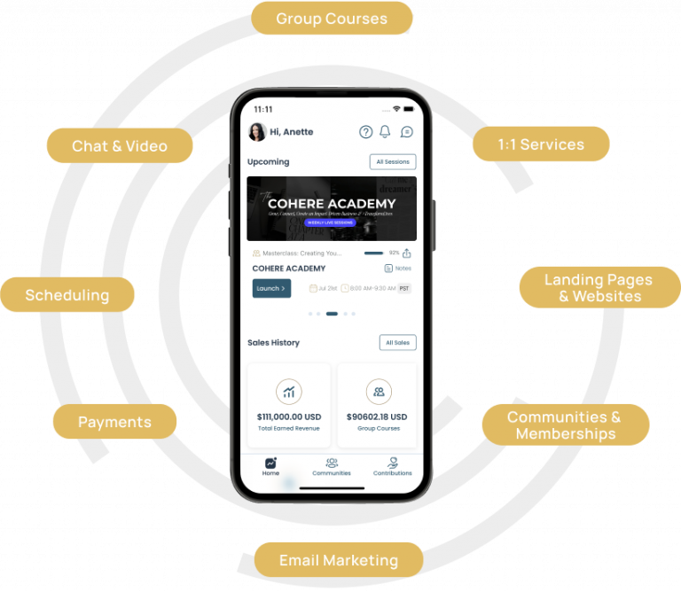 Using Cohere to streamline her offers, landing pages, payments, self-paced courses and more.