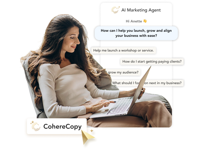 Your subscription includes weekly live founder and expert support, the Cohere Academy, and the 60-Day Launch Accelerator. You receive real-time guidance as you build, launch, and grow your business. The AI agent drafts campaigns, emails, and funnels and provides support across the entire platform to help you scale your impact without burning out.