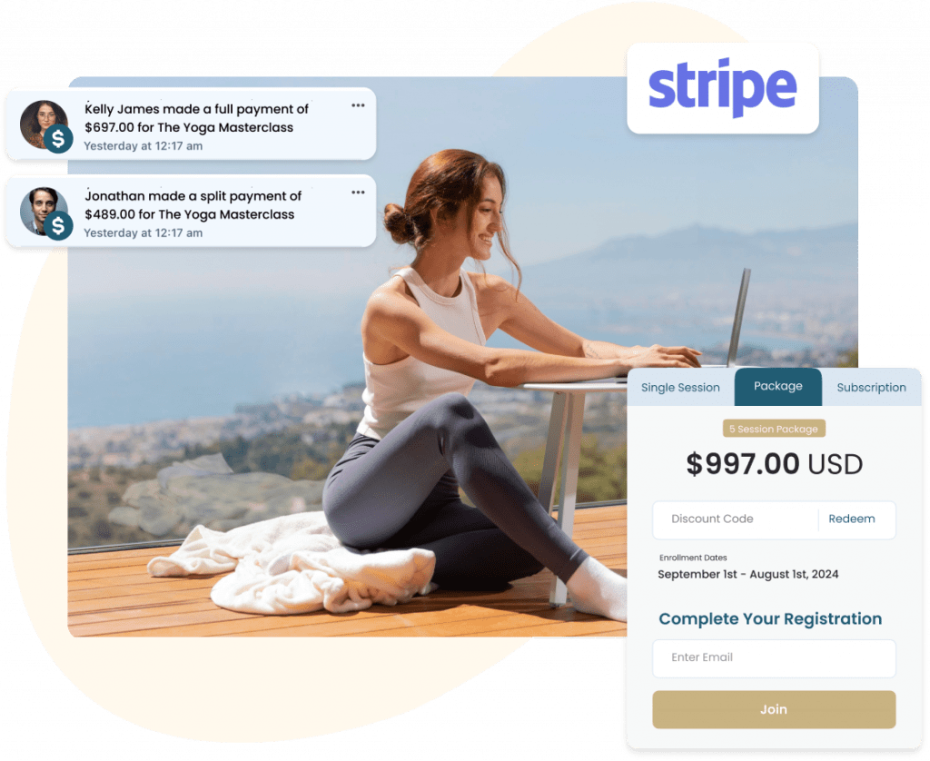 Cohere payments work across all your online service offers, including 1:1, Group Courses, Memberships, Workshops, and Communities. Leverage our ready-to-go payment processor or connect your Stripe account.